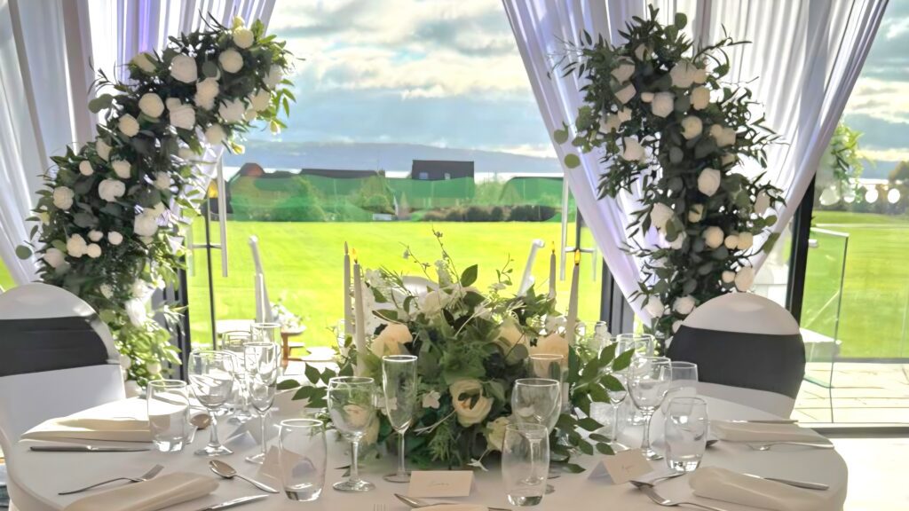 Browse our real wedding décor setups across venues in Northern Ireland — from floral arches, centrepieces and ceremony backdrops to LED neon signs, aisle styling and premium table décor. Every setup includes full delivery, styling and takedown, personalised to the couple and venue.